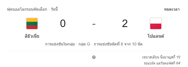 • หมดเวลา: โปแลนด์ บุกชนะ ลิทัวเนีย 2-0