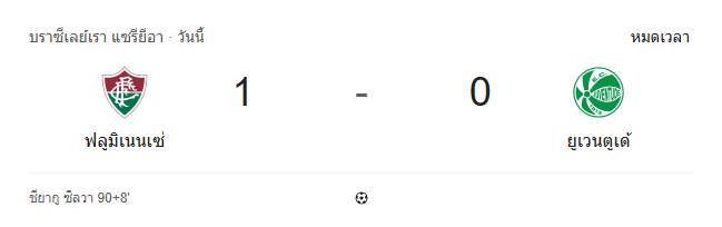 - หมดเวลา: ฟลูมิเนนเซ่ 1–0 ยูเวนตูเด้ เกมอึดอัดจนถึงนาทีสุดท้าย แต่ลูกยิงของ ติอาโก้ ซิลวา กลายเป็นประตูชัยให้เจ้าบ้านคว้าชัยอย่างดราม่าในช่วงทดเจ็บ!