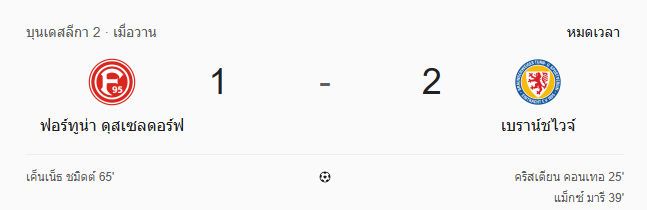 ชัยชนะเกมนี้ช่วยให้ เบราน์ชไวก์ เก็บสามแต้มล้ำค่า ขยับหนีโซนท้ายตาราง ขณะที่ ฟอร์ทูน่า ดุสเซลดอร์ฟ ต้องกลับไปแก้เกมรับที่พลาดง่ายในครึ่งแรก แม้จะมีจังหวะบุกมากกว่าแต่ขาดความเฉียบคม