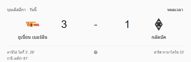 ยูเนี่ยน เบอร์ลิน ระเบิดฟอร์มเปิดบ้านอัด กลัดบัค 3-1 ขึ้นแท่นทีมแกร่งแห่งเมืองหลวง!