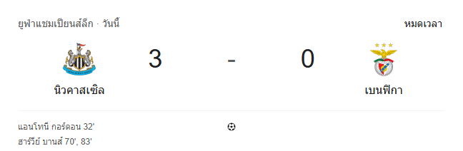 ผลบอลสด ยูฟ่าแชมเปียนส์ลีก ระหว่าง นิวคาสเซิ่ล ยูไนเต็ด vs เบนฟิก้า วันนี้ 22/10/68 ดูบอลย้อนหลัง คลิปไฮไลท์ ดูบอล ยูฟ่าแชมเปียนส์ลีก
