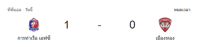 - จบครึ่งแรก: การท่าเรือ เอฟซี นำ เมืองทอง ยูไนเต็ด 1-0 ประตูจาก พีระดล ชำนาซ้าย นาทีที่ 30