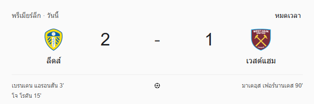 ผลบอลสด พรีเมียร์ลีก ระหว่าง ลีดส์ ยูไนเต็ด 2-1 เวสต์แฮมยูไนเต็ด วันนี้ 25/10/68