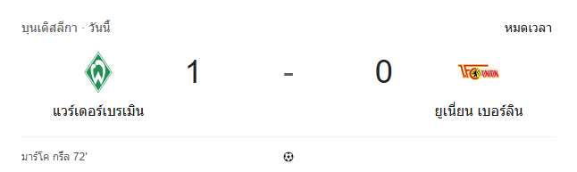 รายงานการแข่งขัน: แวร์เดอร์ เบรเมิน 1-0 ยูเนี่ยน เบอร์ลิน