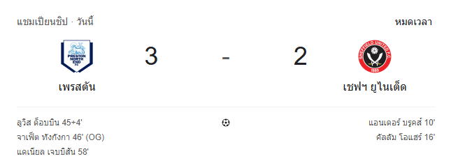 - นาทีที่ 97: หมดเวลา! เพรสตัน นอร์ท เอนด์ เปิดบ้านเฉือนเอาชนะ เชฟฟิลด์ ยูไนเต็ด ไปได้อย่างสุดมันส์ 3-2 เก็บสามแต้มสำคัญได้สำเร็จ!