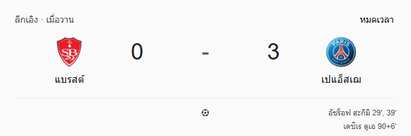 - นาทีที่ 78-79: แบรสต์เปลี่ยนเพิ่ม หวังเร่งสปีดริมเส้น PSG สวนกลับเป็นชุด