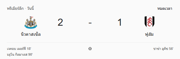 ศึกพรีเมียร์ลีกค่ำคืนนี้เข้มข้นจนแฟนบอลต้องลุกขึ้นยืนส่งเสียงลั่น โดย “สาลิกาดง” นิวคาสเซิ่ล ยูไนเต็ด เปิดรัง เซนต์ เจมส์ พาร์ก ไล่บดเอาชนะ ฟูแล่ม ไปแบบสุดดราม่า 2-1 ซึ่งทีมงาน บ้านกีฬา จะพาทุกท่านไปเก็บรายละเอียดแบบเน้น ๆ พร้อมแทรกคีย์เวิร์ด ผลบอลสด ให้ได้เสพอารมณ์เหมือนอยู่ในสนามจริง!