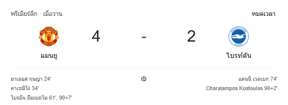 รายงานการแข่งขัน: แมนเชสเตอร์ ยูไนเต็ด 4-2 ไบรท์ตัน