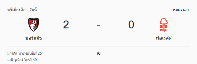 - นาทีที่ 78: ฟอเรสต์ได้เตะมุมต่อเนื่อง แต่บอร์นมัธยืนป้องกันแน่น