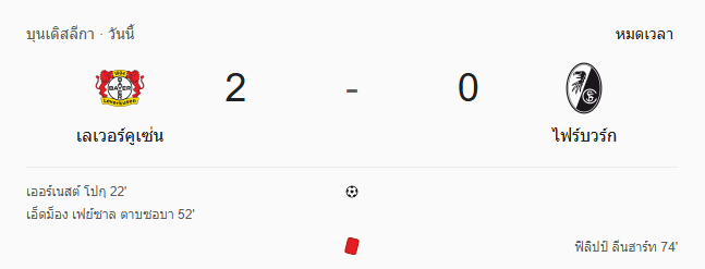 • หมดเวลา: เลเวอร์คูเซ่น 2-0 ไฟร์บวร์ก