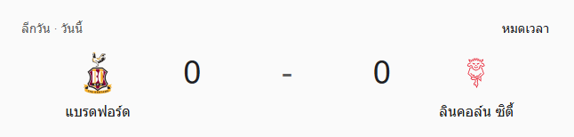 • 🔚 หมดเวลา: แบรดฟอร์ด ซิตี้ 0-0 ลินคอล์น ซิตี้ เกมที่ทั้งสองทีมสู้กันดุเดือดแต่ไร้สกอร์ จบแบบแบ่งแต้มกันไป