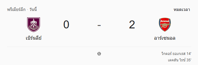 • หมดเวลา: เบิร์นลีย์ 0–2 อาร์เซน่อล
