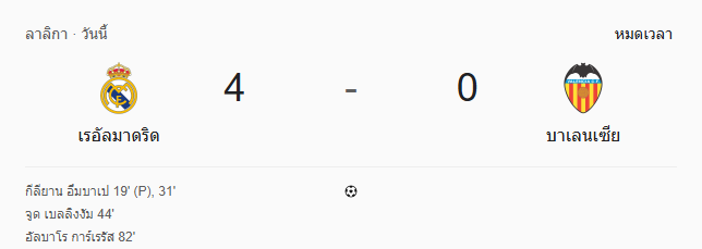 • หมดเวลา: เรอัล มาดริด 4–0 บาเลนเซีย