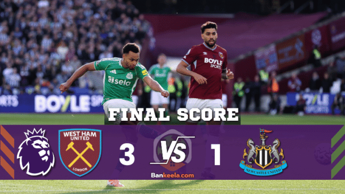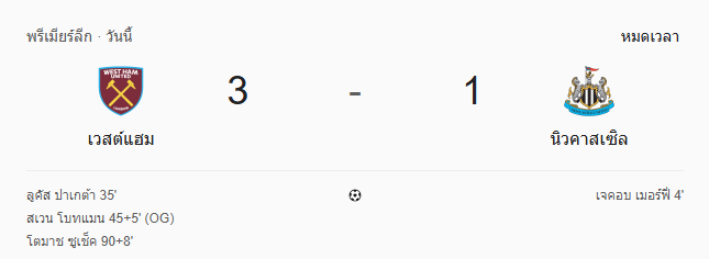 • หมดเวลา: เวสต์แฮม ยูไนเต็ด 3–1 นิวคาสเซิล ยูไนเต็ด