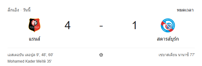 - หมดเวลา: แรนส์ 4–1 สตราส์บูร์ก