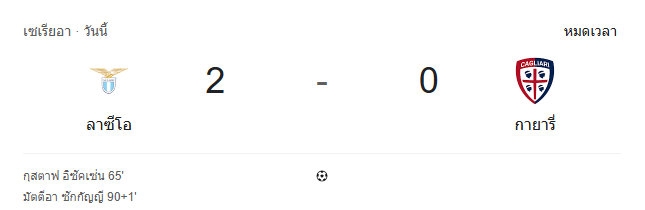 - หมดเวลา: ลาซิโอ 2-0 กายารี่