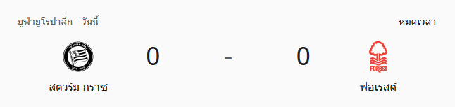 - จบเกม: สตวร์ม กราซ 0–0 น็อตติงแฮม ฟอเรสต์