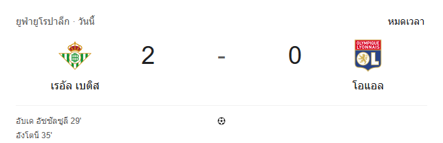 - หมดเวลา: เรอัล เบติส ชนะ โอลิมปิก ลียง 2–0