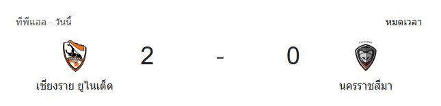 - หมดเวลา: เชียงราย ยูไนเต็ด 2-0 นครราชสีมา มาสด้า เอฟซี