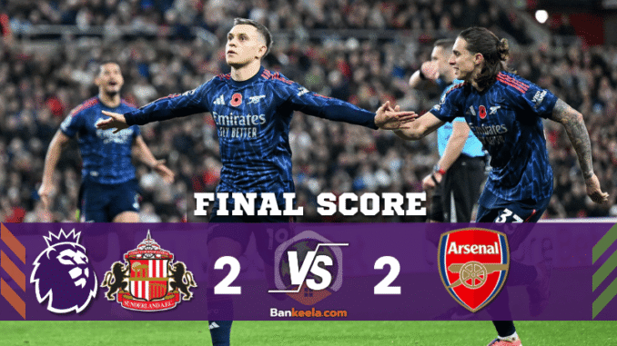 ศึก พรีเมียร์ลีก อังกฤษ คืนวันที่ 9 พฤศจิกายน 2025 ที่สนาม Stadium of Light แฟนบอลได้ชมเกมระดับมหากาพย์เมื่อ “แมวดำ” ซันเดอร์แลนด์ เปิดบ้านเสมอสุดมันส์กับ “ปืนใหญ่” อาร์เซน่อล ไปแบบหายใจไม่ทั่วท้อง 2-2 โดยเกมนี้เต็มไปด้วยอารมณ์ ความกดดัน และดราม่าทดเจ็บที่ทำเอาแฟน “ปืนใหญ่” แทบทรุดหลังถูกยิงตีเสมอในวินาทีสุดท้าย (อัปเดตโดย บ้านกีฬา – ผลบอลสด รายงานสดทุกจังหวะสำคัญ)