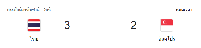⭐ รายงานการแข่งขัน ไทย 3-2 สิงคโปร์