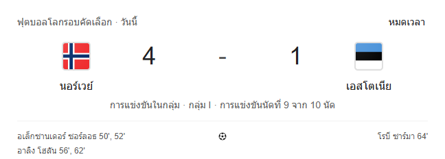- นาทีที่ 94: หมดเวลา! นอร์เวย์ 4 – 1 เอสโตเนีย