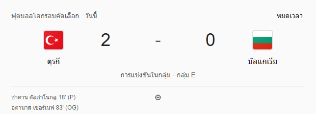 - นาทีที่ 83: GOAL! ⚽ อัตนัย! Atanas Chernev ส่งบอลเข้าประตูตัวเอง จากจังหวะความผิดพลาดในแนวรับ ตุรกีนำห่าง 2-0