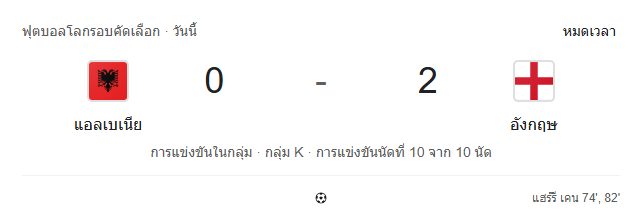 ผลบอลสด ฟุตบอลโลก 2026 รอบคัดเลือก โซนยุโรป ระหว่าง แอลเบเนีย พบ อังกฤษ วันนี้ 17/11/68 ดูบอลย้อนหลัง คลิปไฮไลท์ ดูบอล ฟุตบอลโลก 2026 รอบคัดเลือก โซนยุโรป