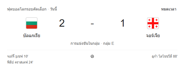 ผลบอลสด ฟุตบอลโลก 2026 รอบคัดเลือก โซนยุโรป ระหว่าง บัลแกเรีย 2-1 จอร์เจีย วันนี้ 19/11/68