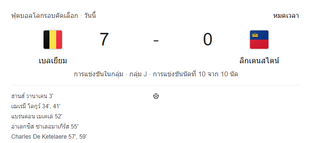 📝 รายงานการแข่งขัน: เบลเยียม 7-0 ลิกเตนสไตน์