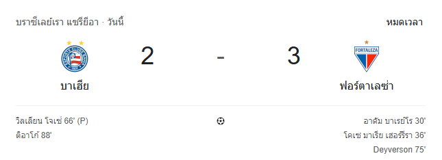 - หมดเวลา — ฟอร์ตาเลซาบุกเฉือน 3-2