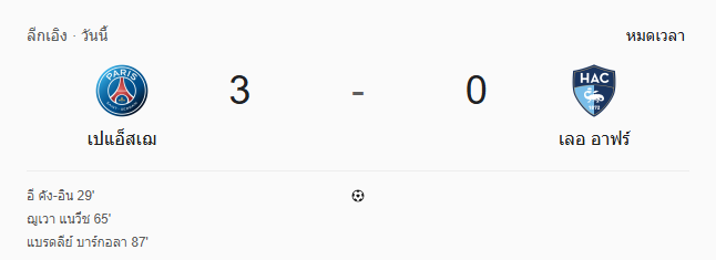 ผลบอลสด ลีกเอิง ฝรั่งเศส ระหว่าง ปารีส แซงต์ แชร์กแมง vs เลอ อาฟร์ วันนี้ 23/11/68 ดูบอลย้อนหลัง คลิปไฮไลท์ ดูบอล ลีกเอิง ฝรั่งเศส
