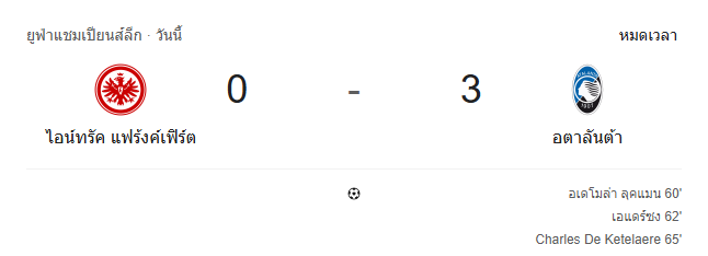 - นาทีที่ 94: จบเกม ไอน์ทรัค แฟร้งค์เฟิร์ต 0–3 อตาลันต้า