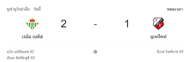 ผลบอลสด ยูฟ่ายูโรปาลีก ระหว่าง เรอัล เบติส vs อูเทร็คท์ วันนี้ 28/11/68 ดูบอลย้อนหลัง คลิปไฮไลท์ ดูบอล ยูฟ่ายูโรปาลีก
