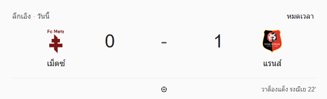 • นาทีที่ 96: จบเกม แรนส์บุกชนะ เม็ตซ์ 0–1