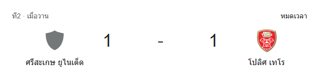 รายงานการแข่งขัน: ศรีสะเกษ ยูไนเต็ด 1-1 โปลิศ เทโร