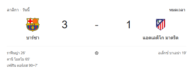 - นาทีที่ 98: หมดเวลา บาร์เซโลนาเปิดบ้านชนะแอตเลติโก มาดริด 3-1