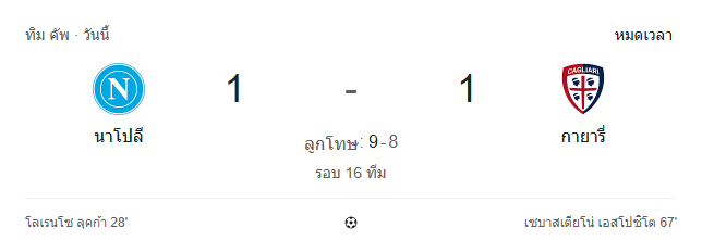 รายงานการแข่งขัน: นาโปลี 1-1 กายารี (นาโปลีชนะจุดโทษ 9-8)