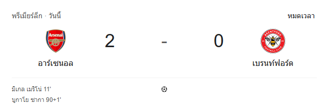 • นาทีที่ 97: จบเกม อาร์เซน่อลชนะ เบรนท์ฟอร์ด 2-0