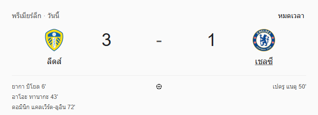 - นาทีที่ 97: จบเกม! ลีดส์ ยูไนเต็ด เปิดบ้านชนะ เชลซี 3-1
