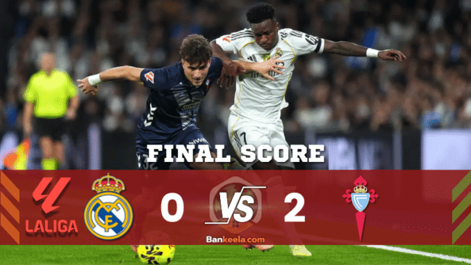 - หมดเวลา: เรอัลมาดริด 0-2 เซลต้า บีโก้ — ทีมเยือนชิงโอกาสยิงคมกว่า เก็บสามแต้มไปอย่างเด็ดขาด