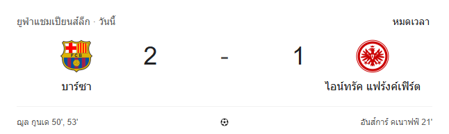 - จบครึ่งแรก: บาร์เซโลนา 0-1 ไอน์ทรัค แฟร้งค์เฟิร์ต