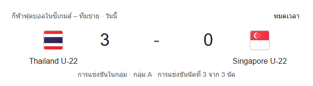 ผลบอลสด ซีเกมส์ 2025 ระหว่าง ไทย (ยู22) vs สิงคโปร์ (ยู22) วันนี้ 11/12/68 ดูบอลย้อนหลัง คลิปไฮไลท์ ดูบอล ซีเกมส์ 2025