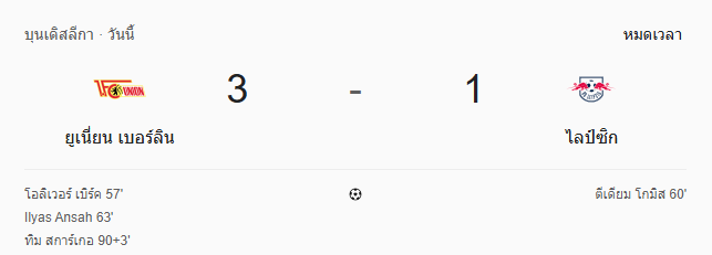 - นาทีที่ 93: GOAL! อูนิโอน เบอร์ลินนำห่าง 3-1