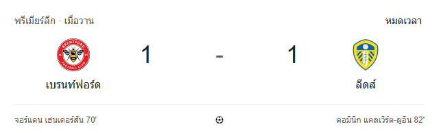 - นาทีที่ 96: หมดเวลา เบรนท์ฟอร์ด เสมอ ลีดส์ ยูไนเต็ด 1-1