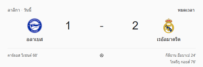 - นาทีที่ 97: หมดเวลา อลาเบส แพ้ เรอัล มาดริด 1-2