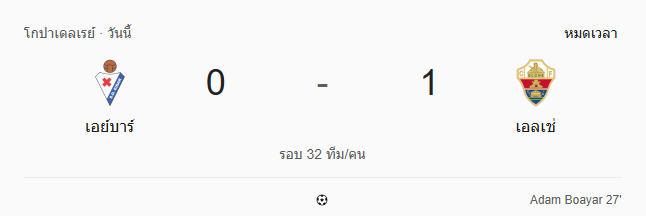 ผลบอลสด โกปาเดลเรย์ ระหว่าง เออิบาร์ vs เอลเช่ วันนี้ 17/12/68 ดูบอลย้อนหลัง คลิปไฮไลท์ ดูบอล โกปาเดลเรย์