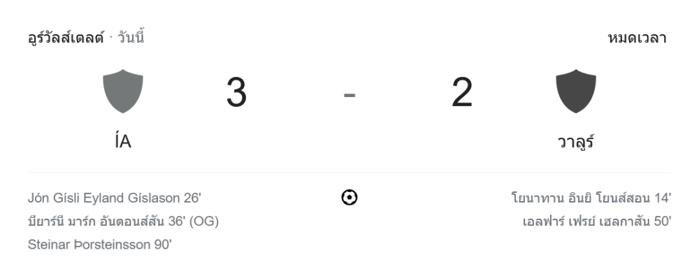 ในการแข่งขันฟุตบอลอูร์วัลส์เดลด์วันนี้ อัคราเนส เปิดบ้านเอาชนะ วาลูร์ เรย์ยาวิค อย่างดุเดือดด้วยสกอร์ 3-2 ทำให้ อัคราเนส คว้าชัยในบ้านได้สำเร็จ