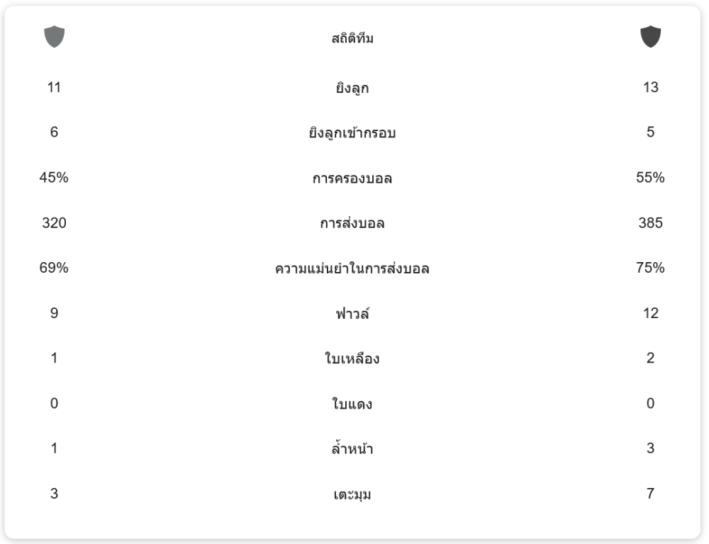 จากสถิติการแข่งขันวันนี้ อัคราเนส มีโอกาสยิง 11 ครั้ง โดยเข้ากรอบ 6 ครั้ง ขณะที่ วาลูร์ เรย์ยาวิค มีโอกาสยิง 13 ครั้ง เข้ากรอบ 5 ครั้ง วาลูร์ เรย์ยาวิค ครองบอลได้มากกว่าด้วยการครองบอล 55% ขณะที่ อัคราเนส ครองบอล 45% โดยการผ่านบอลของ วาลูร์ เรย์ยาวิค มีความแม่นยำถึง 75%