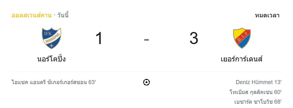 ศึกฟุตบอลออลสเวนส์คาน 2024: ไอเอฟเค นอร์โคปิ้ง พ่าย เยอร์การ์เด้นส์ 1-3